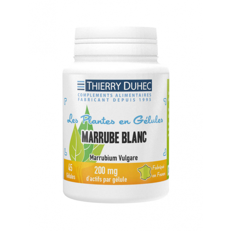 45 ou 180 gélules de Marrube blanc dosées à 200 mg.